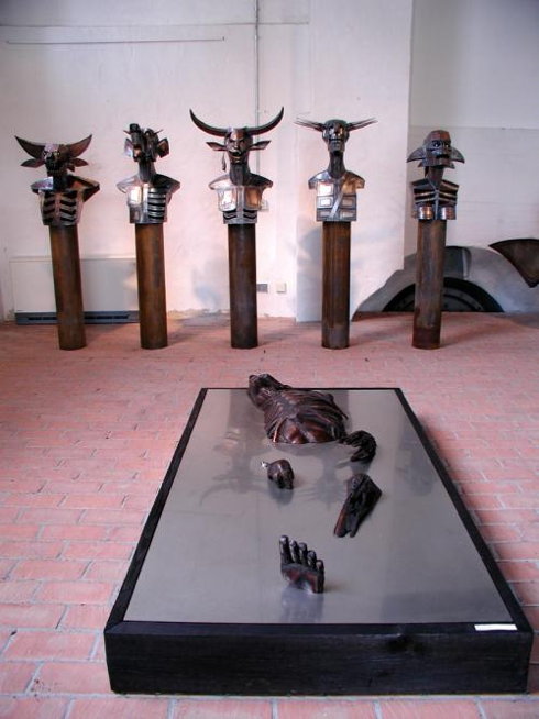 Metallbildhauer: Metallskulptur im Innen- und Aussenbereich Atelier: Blechenhaus im Familiengarten Eberswalde Blick in die Werkstatt mit Ausstellung www.HERRMANNART.de